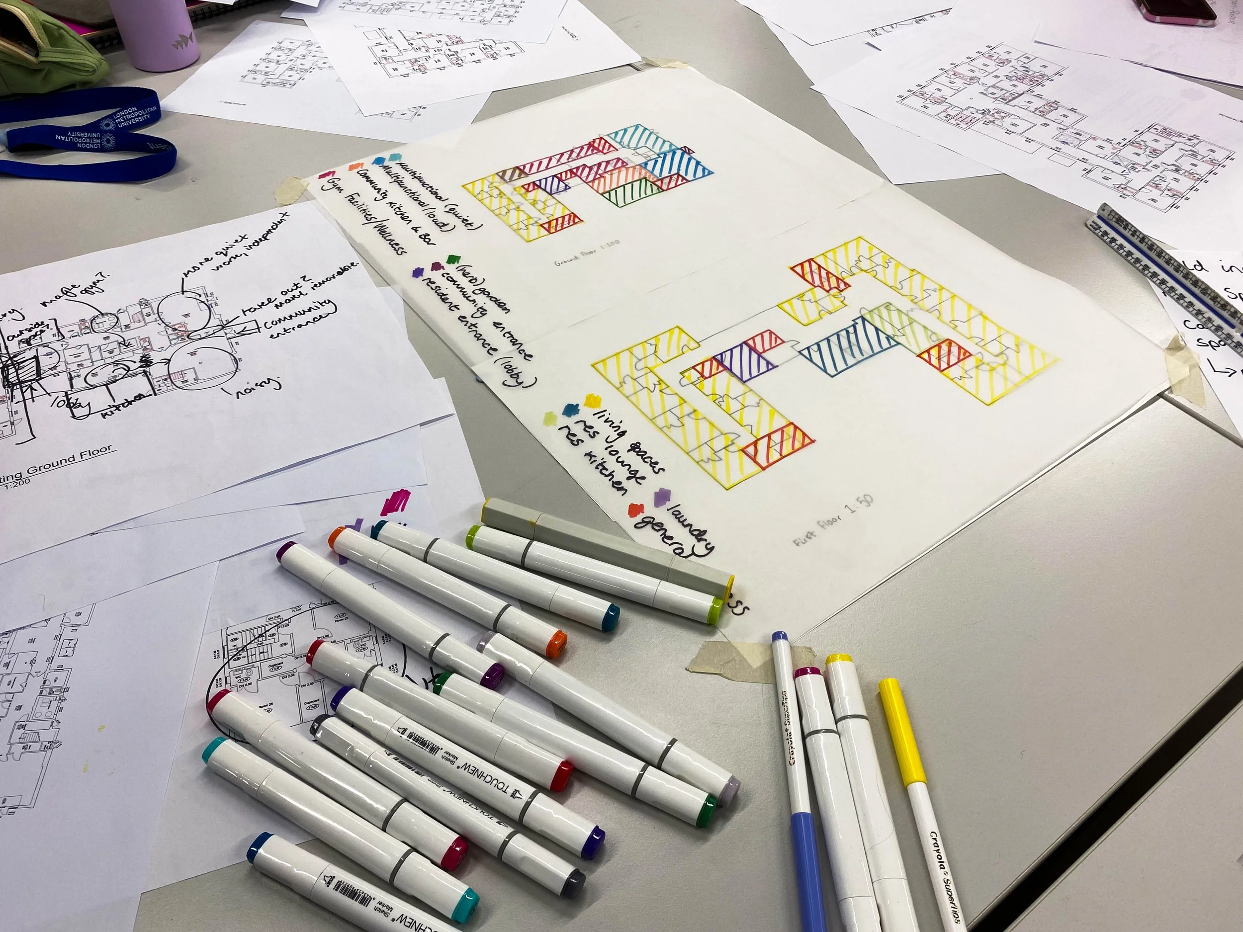The British Institute of Interior Design (BIID) Student Design Challenge was a competition open to final year interior design students from universities across the UK. In a team of 5-7 students, we were given a brief to design a co-living and co-working building for a variety of residents in Whitby, Yorkshire. Adapting and reusing a former nursing home, it was important for the proposed design to promote wellbeing, inclusivity and sustainability. The judges were impressed with my team’s approach to this project because of our careful consideration into the residential accommodations and circulation spaces. Ensuring neurodiversity was specified in the furnishings and sustainable materials and energy efficient methods were integrated all throughout the final design.